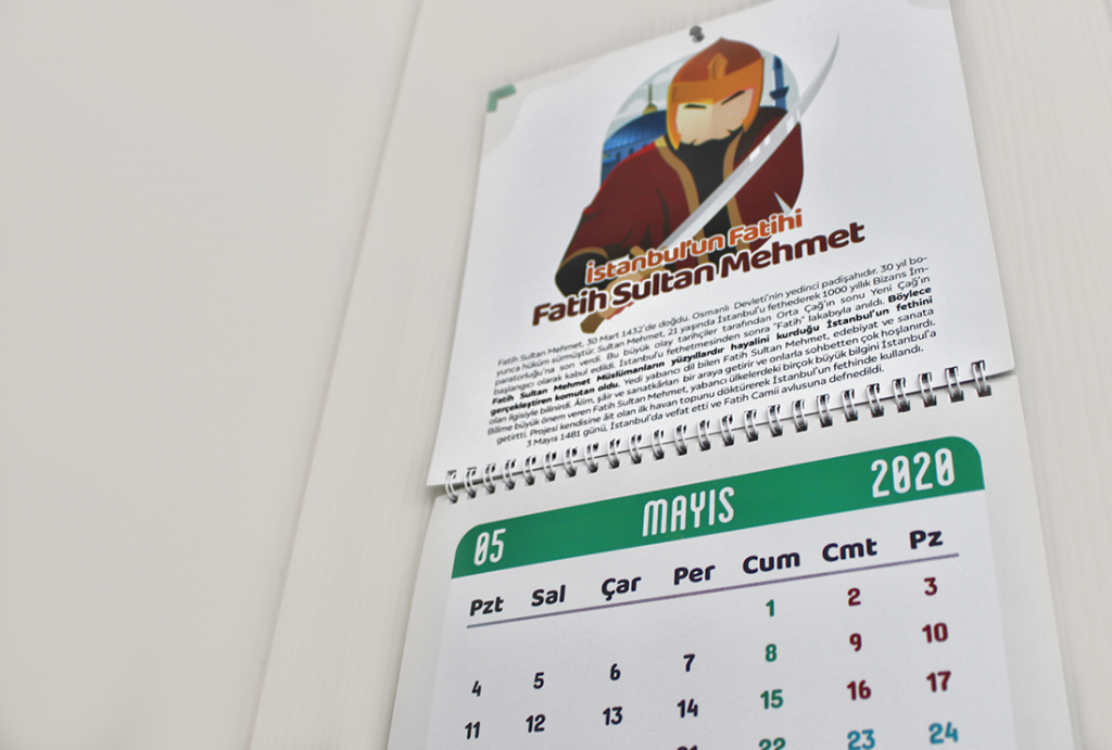 Birkaç arkadaşımla birlikte, çocukların kahramanlara duyduğu bu ilgiyi ve onlar üzerindeki tesirlerini iyice fark ettiğimizde, hızlıca bir çalışma yapmaya karar verdik. Dünyaya güzel izler ve işler bırakan 12 Müslüman kahramanın isimleri ve kısa hayat hikayeleri ile bir takvim hazırladım. Her aya bir kahramanın düştüğü bu kahraman takvim ile çocuklarımıza rol modellerimizi tanıtmaya çalıştık.