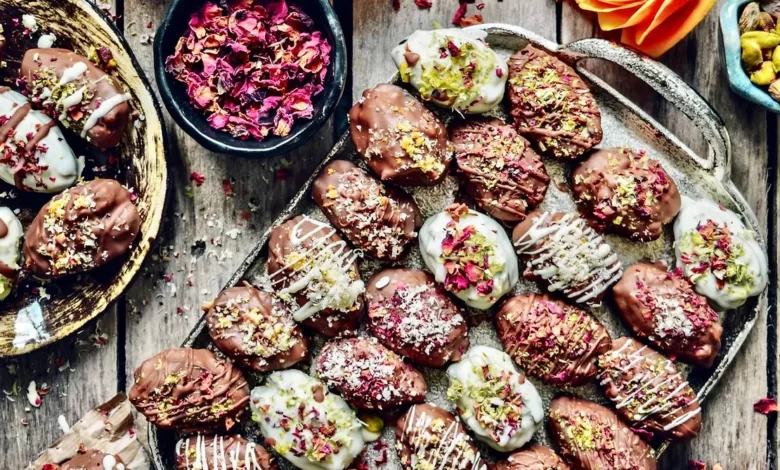10- Baklava ve Gül Tahin Dolgulu Çikolatalı Hurma