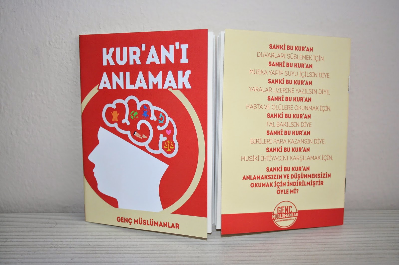 Allah’a hamdolsun davet broşürlerimizden sonra “Kuran’ı Anlamak” adlı bir kitapçık bastırmak nasip oldu. Kitapçık, genel olarak neden Kur’an okumamız ve anlamamız gerektiğini, Kur’an’ın ölülere okunan bir kitap olmadığını güzel bir dil ile anlatmaya çalışıyor. (İçeriği aşağıdaki linkten inceleyebilirsiniz.)