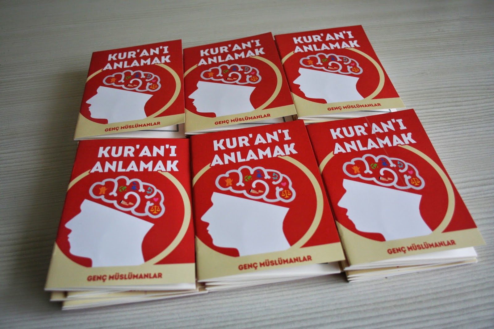 Allah’a hamdolsun davet broşürlerimizden sonra “Kuran’ı Anlamak” adlı bir kitapçık bastırmak nasip oldu. Kitapçık, genel olarak neden Kur’an okumamız ve anlamamız gerektiğini, Kur’an’ın ölülere okunan bir kitap olmadığını güzel bir dil ile anlatmaya çalışıyor. (İçeriği aşağıdaki linkten inceleyebilirsiniz.)